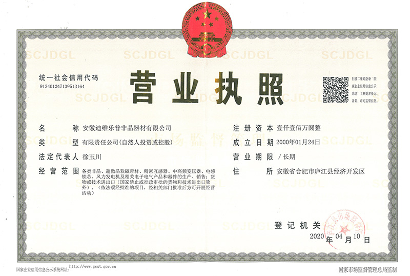 安徽迪维乐普非晶器材有限公司从2013年起至今每年捐赠安徽省合肥市庐江县长岗中学和庐江县水关中学助学金8万元。